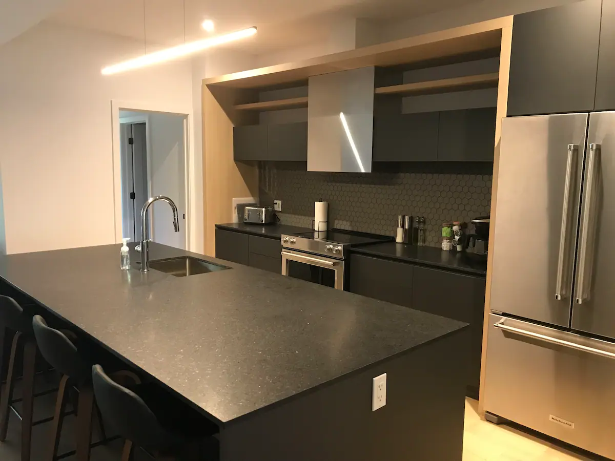 Concept à aire ouverte avec plafonds de 9 pieds, cuisine gastronomique entièrement équipée, salon élégant avec foyer au gaz naturel (en opération bientôt). Profitez du grand balcon extérieur avec barbecue toute l’année. Chambre principale avec lit king size avec salle de bains et espace de travail.