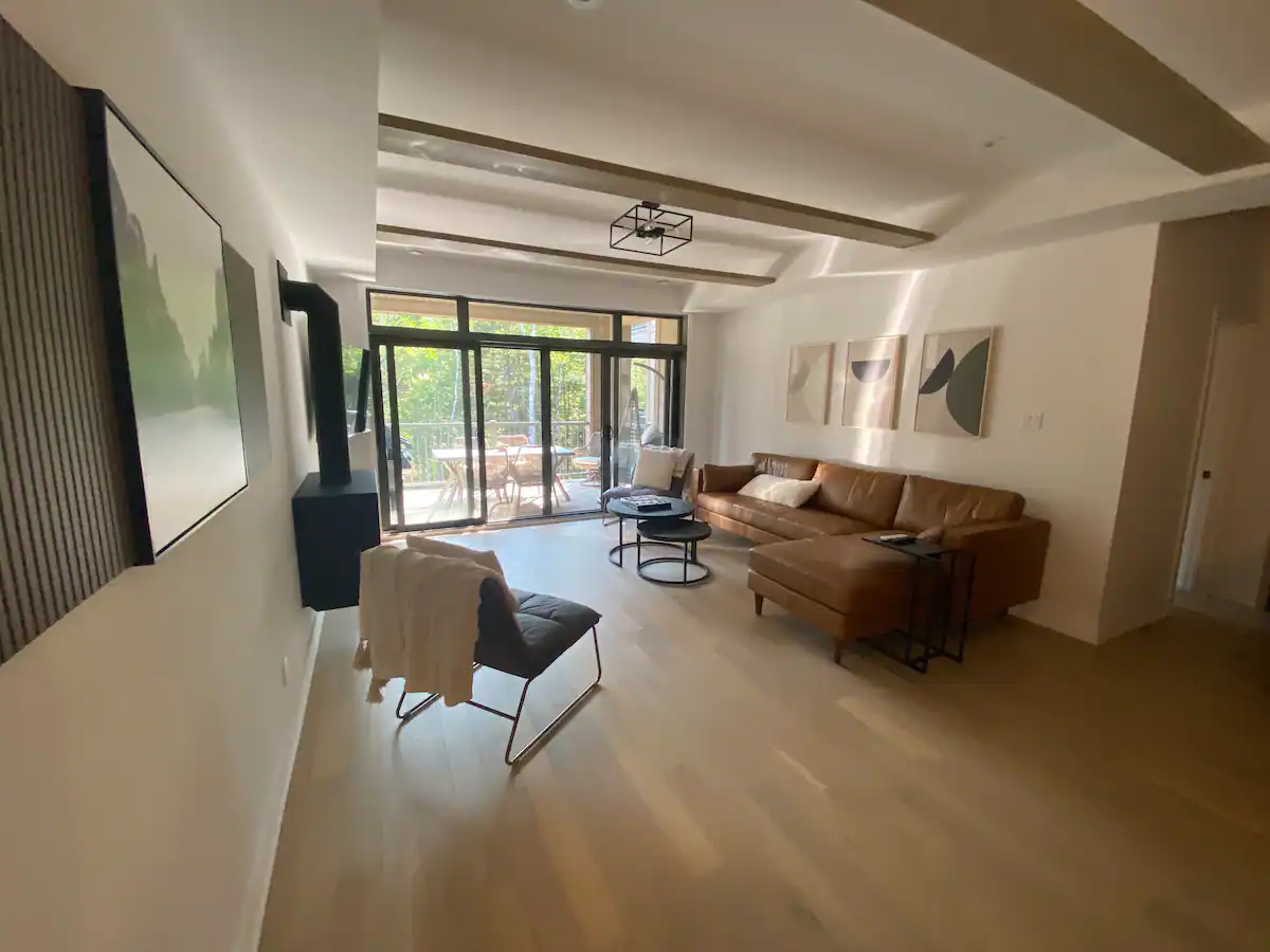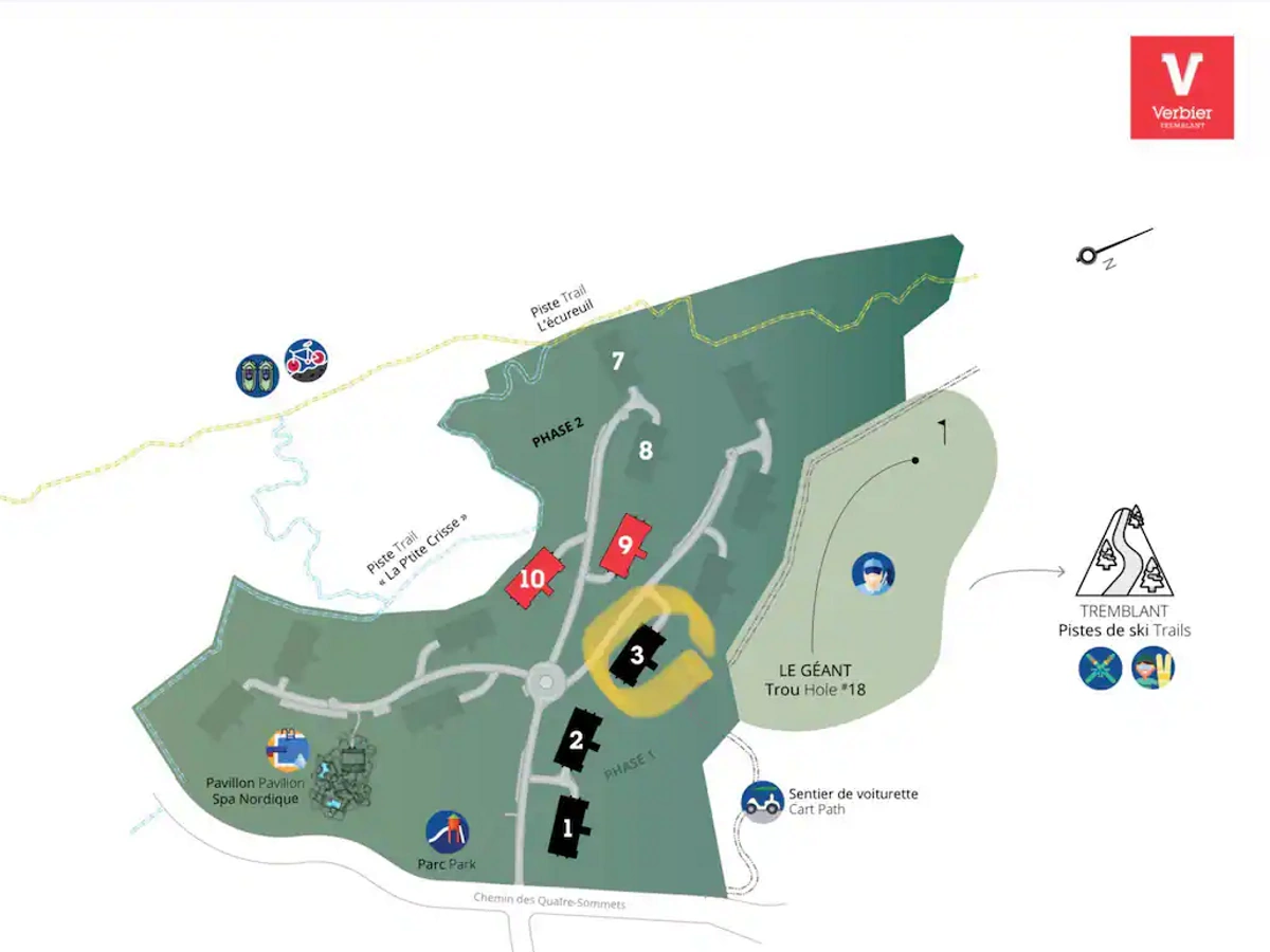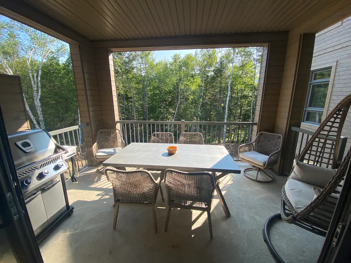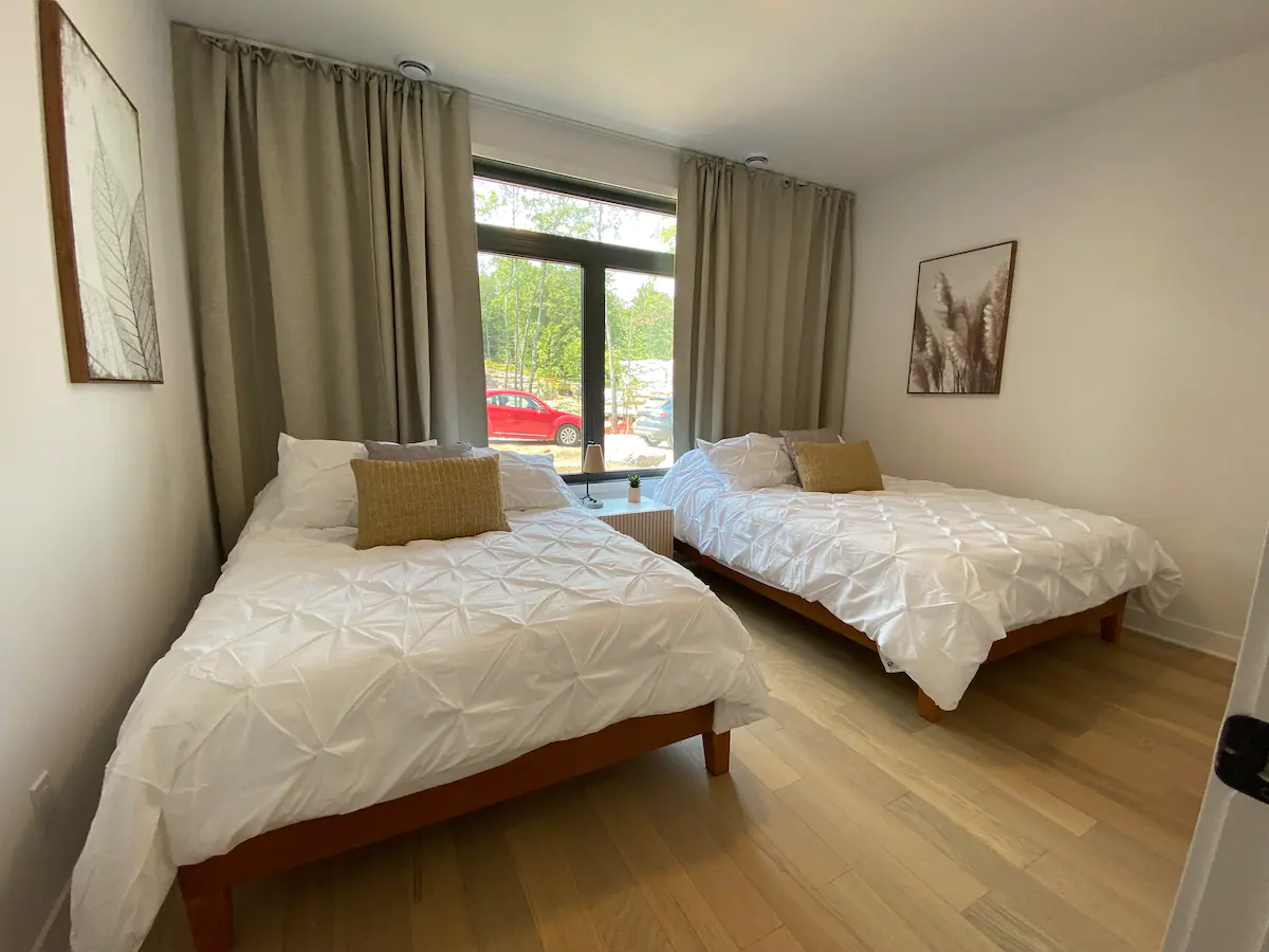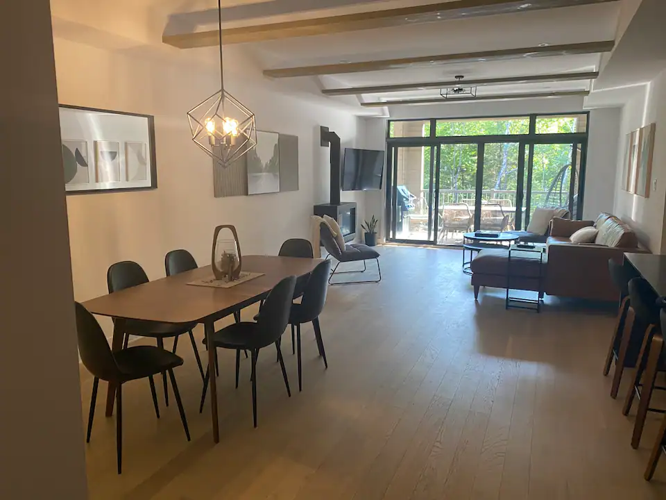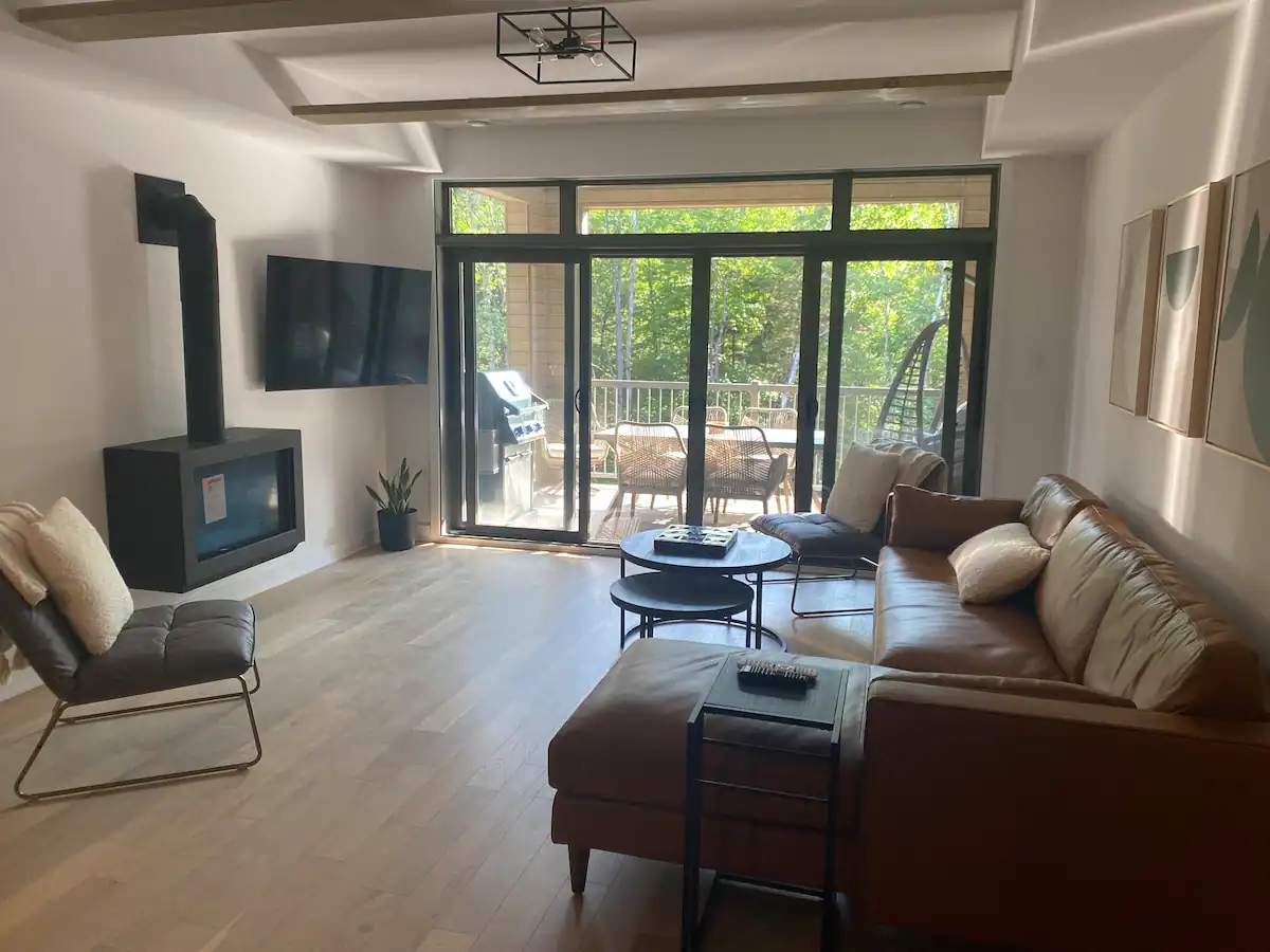 Ce nouveau lieu de séjour stylé est parfait pour les voyages de groupe (6 pers) à proximité de la montagne, des pistes de ski, à moins de 1km – 10-15 minutes à pied, sur les 18e trous du Golf le Géant. Navette gratuite qui vous amènera directement au village et aux pistes de ski, vue sur la montagne, vous avez accès à la plage du lac Tremblant.